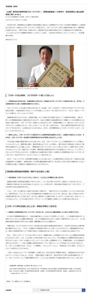 【山梨】県内初の精神科医スポーツドクター、啓発活動推進へ‐川崎洋介・特定医療法人南山会理事長に聞く◆Vol.1
